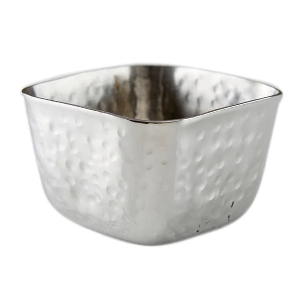 Serve salsas, sauces or dips in this 2.5 ounce stainless steel sauce cup from American Metalcraft. This square sauce cup features a hammered finish and will add a stylish look to any table!