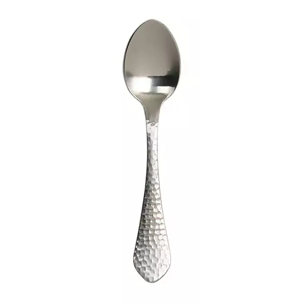 This demitasse spoon features a hammered texture and medium-weight feel. Stone 18/10 flatware is the perfect complement to dress up your tabletop. Satin finish and hammered design minimizes visible fingerprint smudges during waitstaff polish and consumer usage.