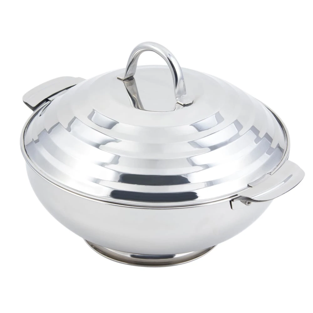 This 10‐13/16″” round server with locking lid features insulated stainless steel construction that keeps your food hot for longer after serving.