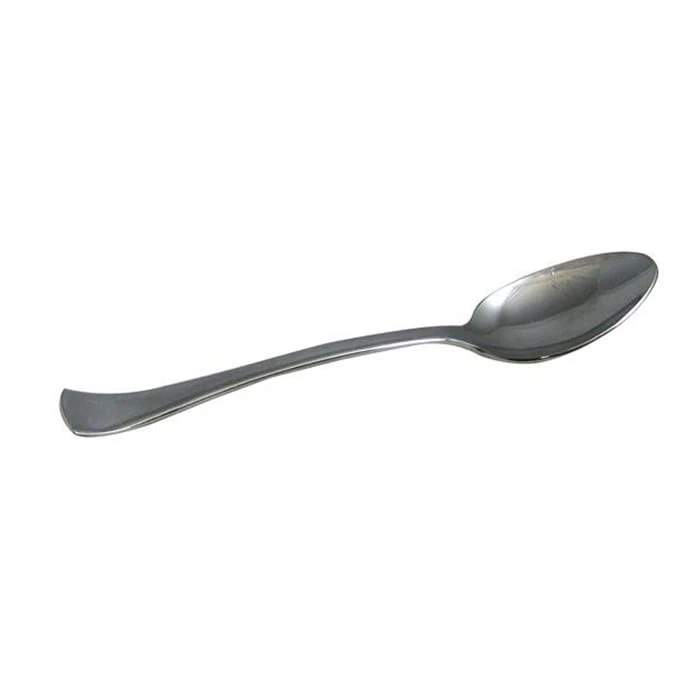 This 7″ soup / dessert spoon from Bon Chef is part of the Aspen Collection and features a squared‐off handle with raised lip.