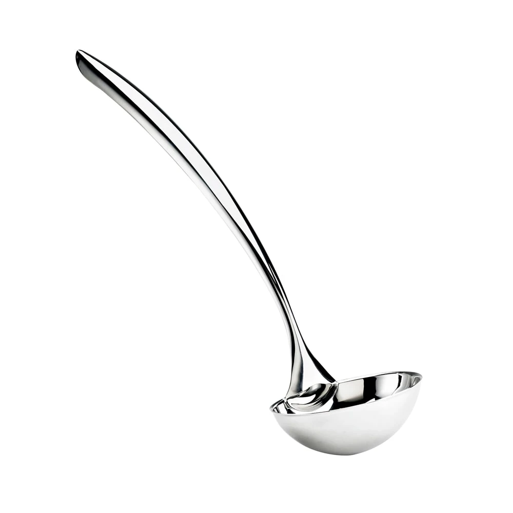 Perfect for serving soup or gravy at your next catered event. This beautiful, mirror finish ladle is decorative and functional. Made using 18/8 stainless steel. This ladle is 15 inches in total length with a 2 inch bowl and a 13 inch handle.
