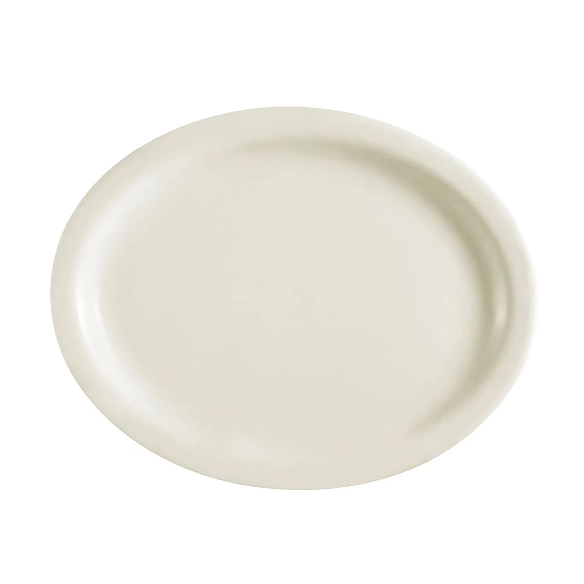 This American White platter from CAC features a narrow rim and is dishwasher, oven, and microwave safe.