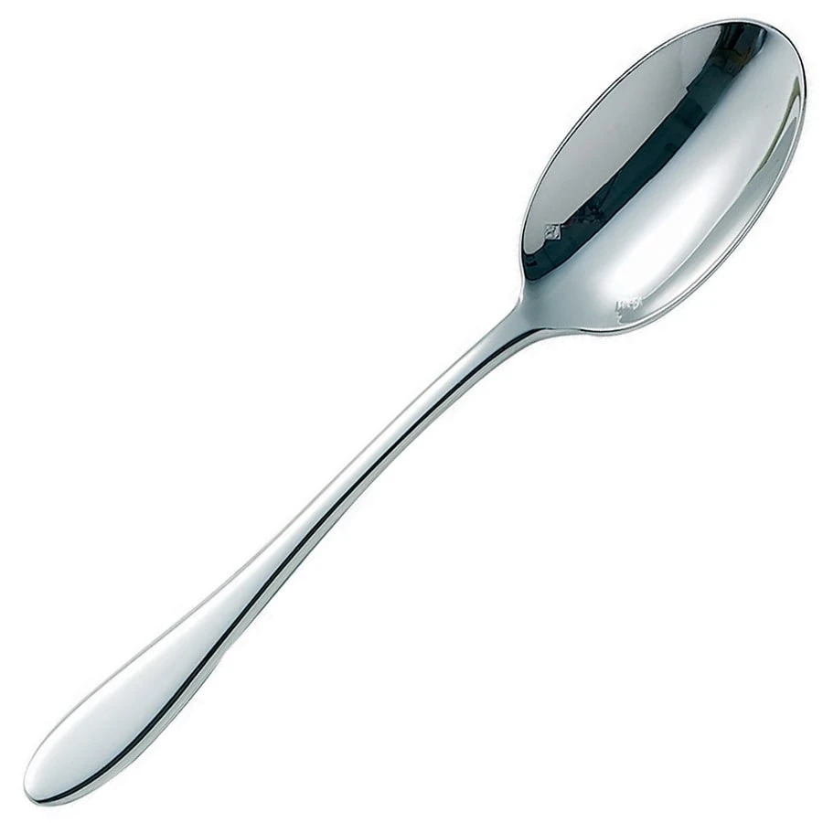 This 7‐1/4″ dessert spoon features a large teardrop handle that taper beautifully to the neck of each piece of Lazzo flatware. The gentle curves add grace to table settings. A perfect choice for any venue.