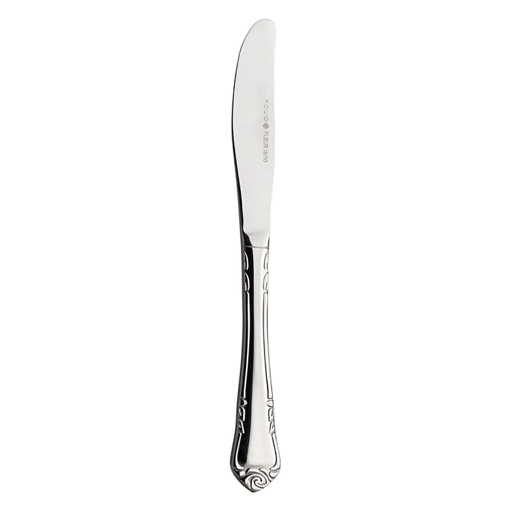 The Fleur Flatware Collection from Folio features a traditional rose bud embossment and quality 18/10 stainless steel construction that will bring elegance to any tabletop.
