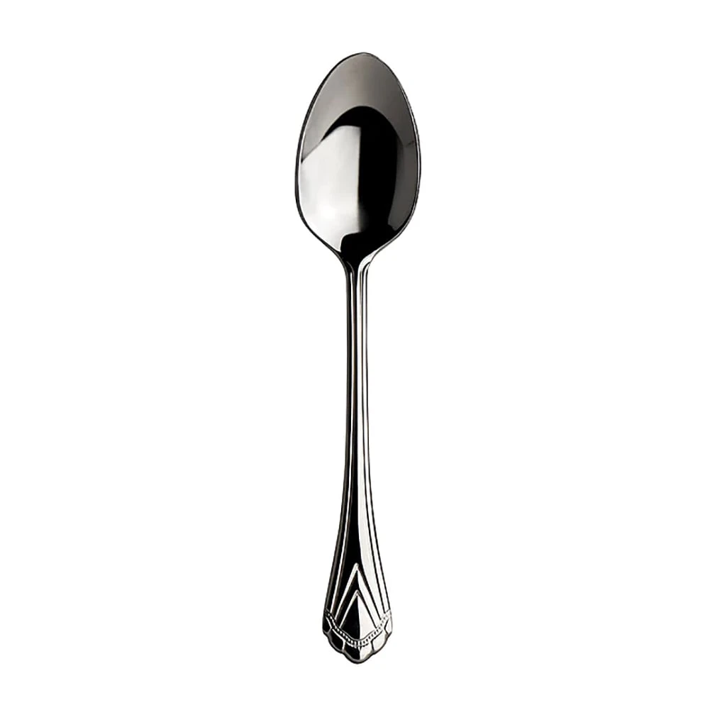 The Madison Flatware Collection from Folio features a timeless embossment with precisely channeled vertical lines to accentuate the mirrored shine and beaded accent.