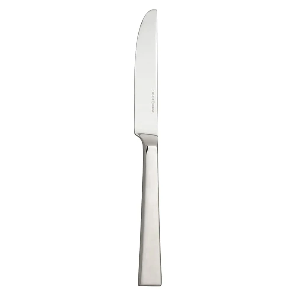 This 9-1/2″ dinner knife is part of the Ridge Flatware Collection by Folio and features a classic design with a unique arch at the base of the tines and beautifully brushed satin finish handles.