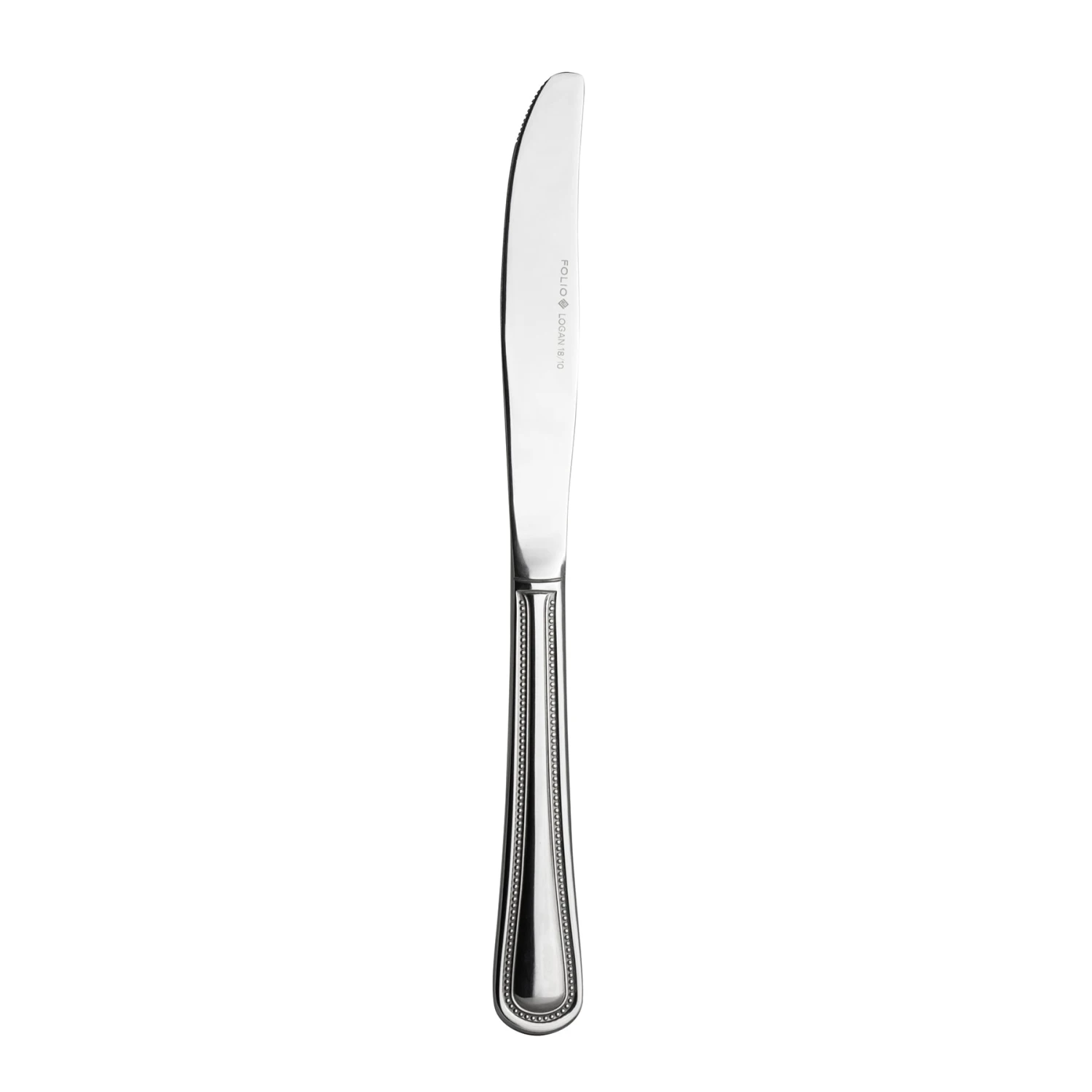 The Logan flatware collection from Folio lets you create a traditional presentation with it’s classic beaded‐rim design. Made of 18/10 stainless steel, this 9″ dinner knife is suitable for any occasion.