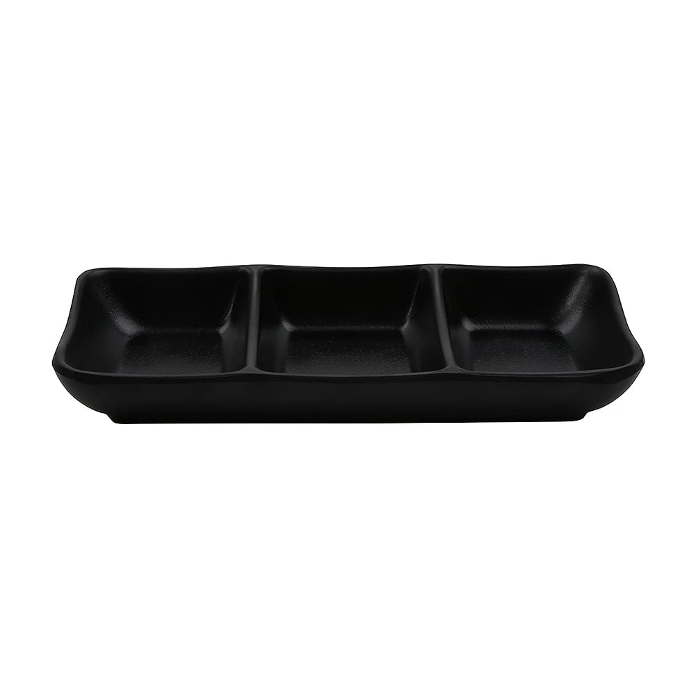 This black 3-compartment dish from G.E.T. is part of the Nara™ Collection and is made of break-resistant melamine. Perfect for outdoor entertaining!