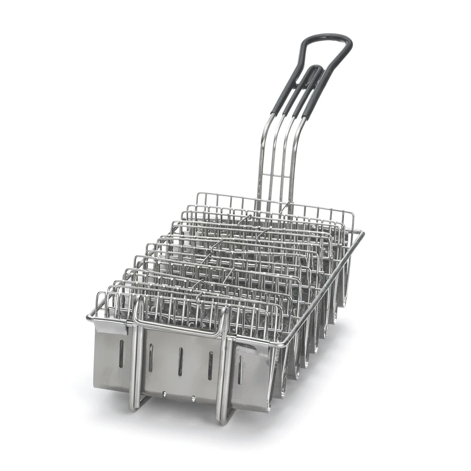 This TableCraft taco fry basket holds eight 6″ taco shells and comes with Black cool‐to‐touch PVC handles.