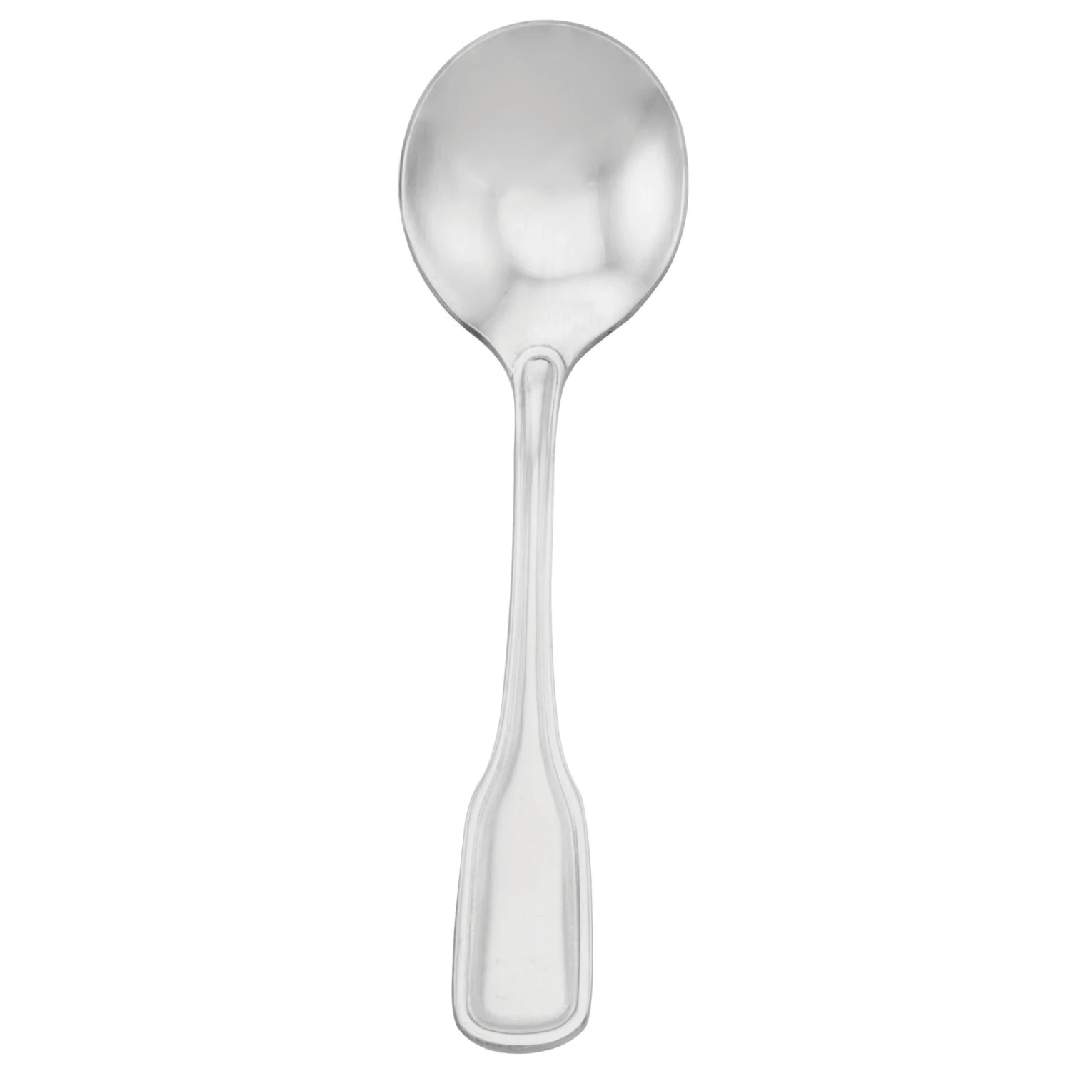 This Saville™ 6‐1/4" bouillon spoon from Walco has that classic European style at an affordable price. It features all 18% chrome construction and is magnetized to work with magnetic flatware retrieval systems.