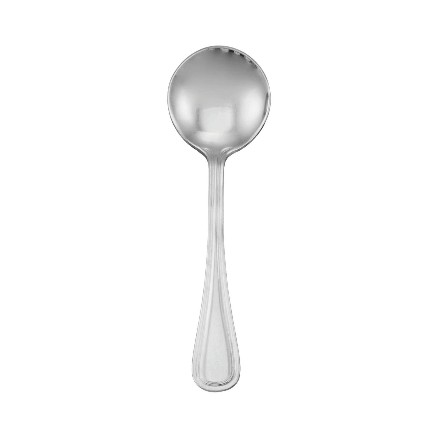 This Walco Marcie™ 5‐1/2″ stainless steel bouillon spoon has a unique design on the handle will enhance your table setting. This flatware is grade rolled to give superior strength and balance. The European sized flatware is made to accompany larger plate sizes. American sizes are available.