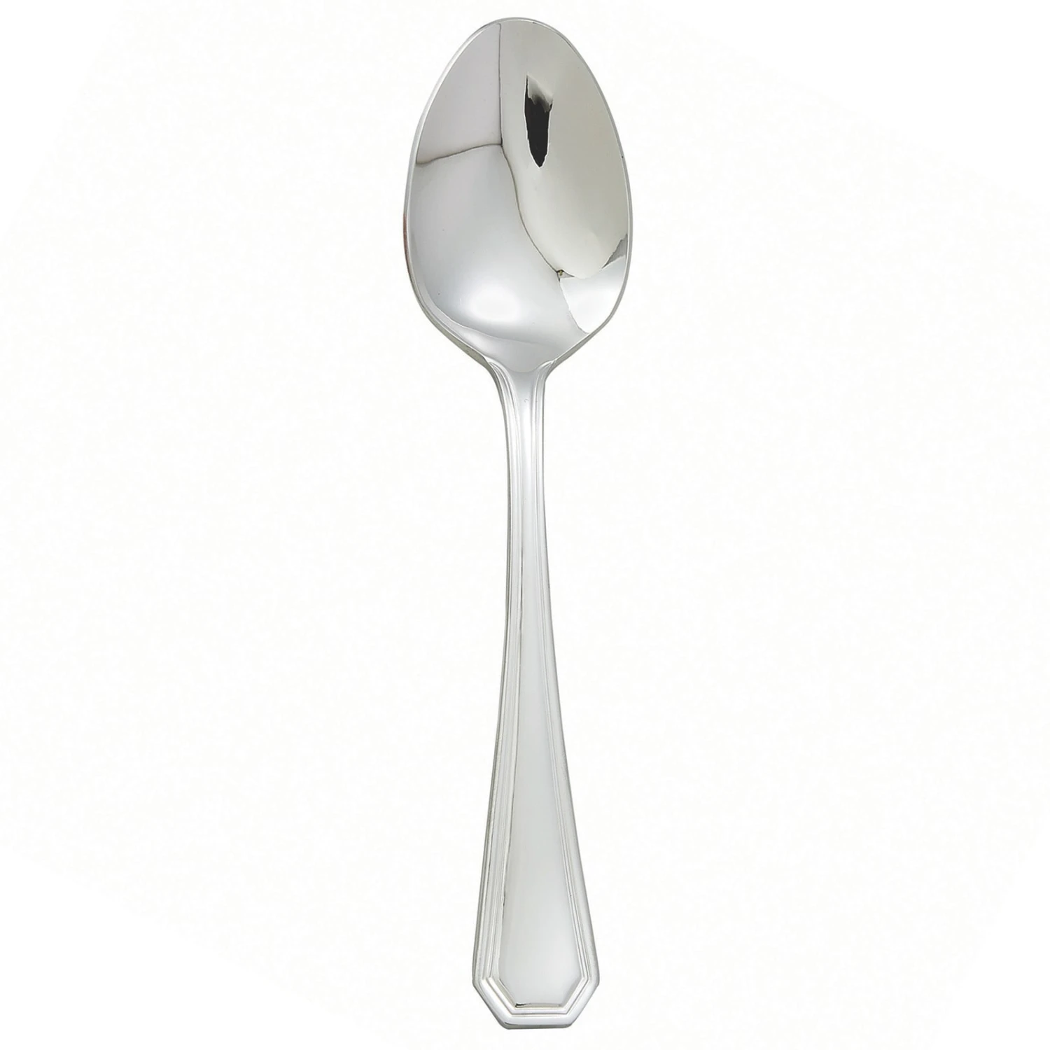 This 7.4″ dinner spoon from Winco is part of the Victoria Collection and features extra heavyweight 18/8 stainless steel construction with a beautiful mirror finish. It has simple aristocratic lines on the handle that makes is perfect for a formal setting.