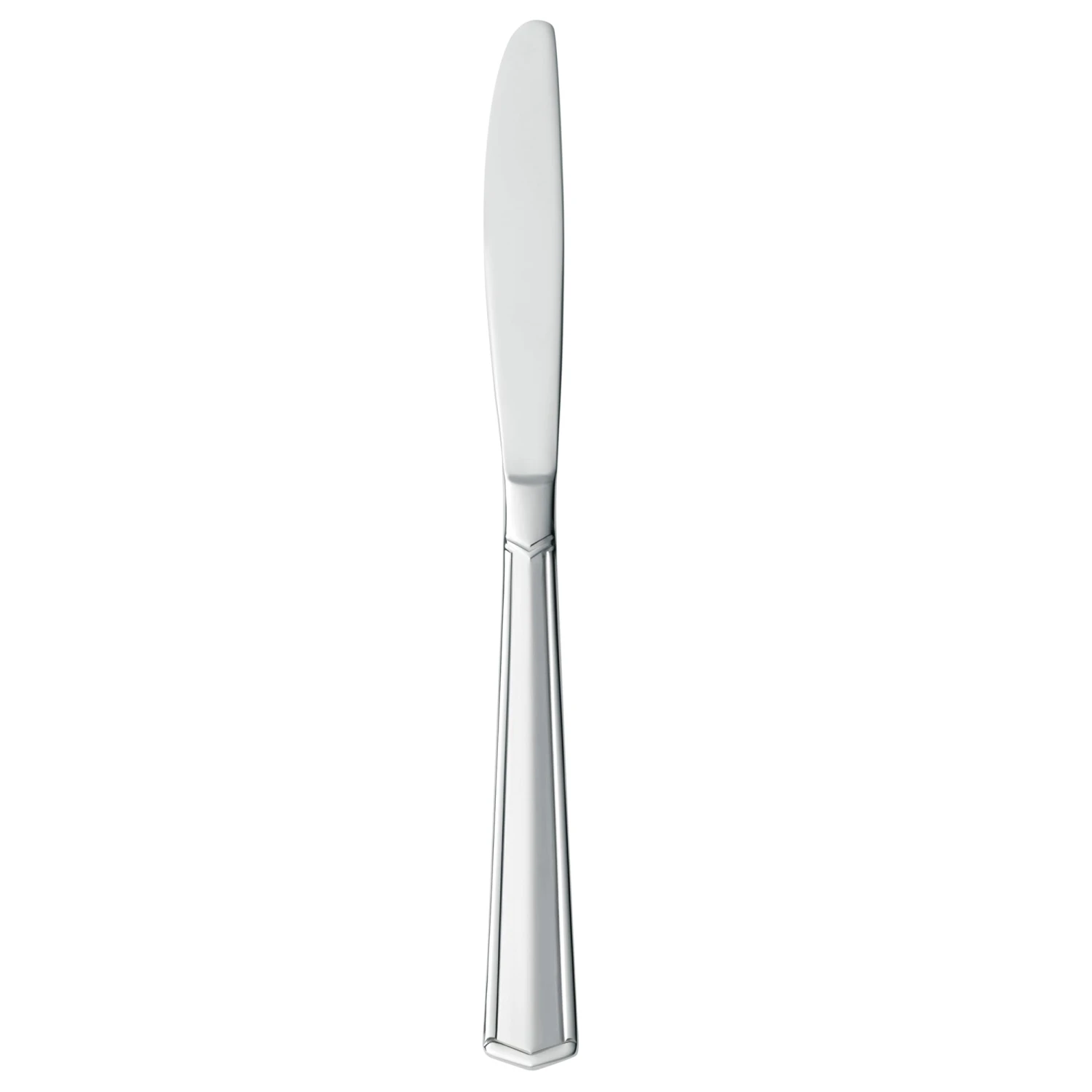 This 8‐1/2″ solid handle dinner knife features the wedge‐shaped handle and center ridge of the Vermont pattern. Your guests will love the heavy weight handle that feels comfortable in their hand.