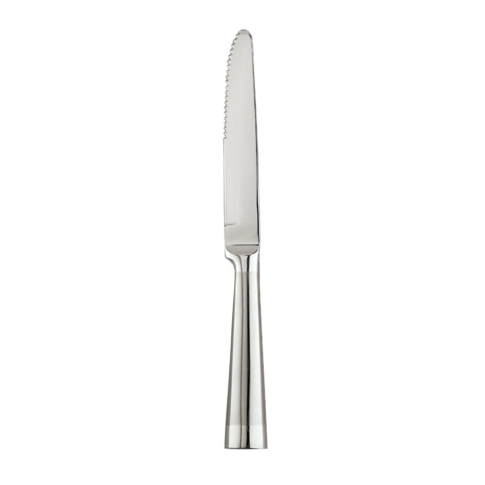 This 9‐1/2″ Shanghai steak knife features an all‐stainless steel construction with a rounded tip and a satin finish. These knives are commercial dishwasher safe. It is recommended that they are washed standing up in a flatware rack and not laying flat in a open rack.
