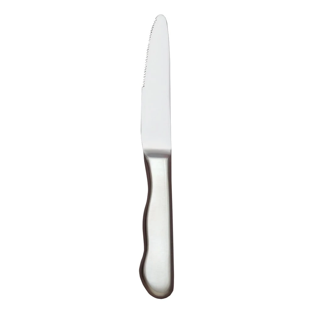 This hollow handle Baron Radiant steak knife features an all‐stainless steel construction with a rounded tip and a satin finish. These knives are commercial dishwasher safe. It is recommended that they are washed standing up in a flatware rack and not laying flat in a open rack.