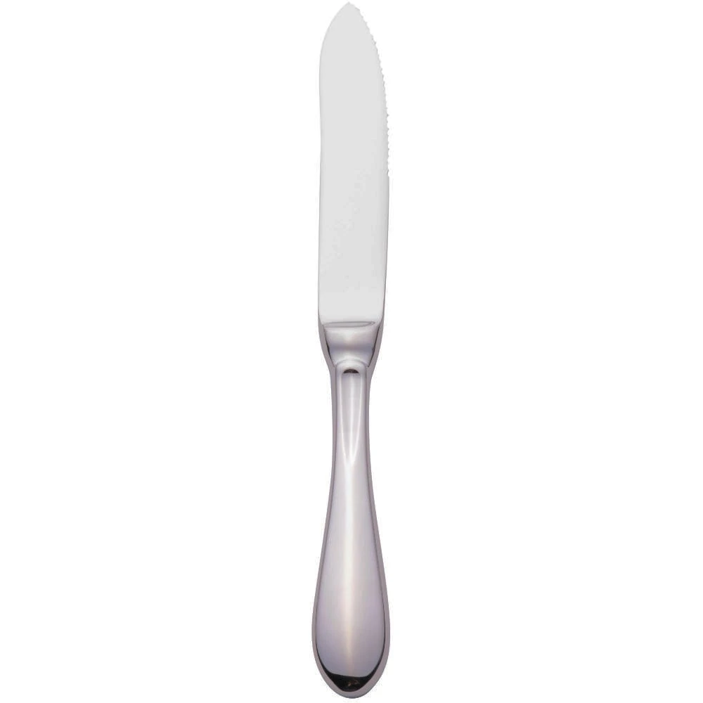 This World® Tableware heavy handle 9″ dinner knife features the sleek, pointed handle and polished finish of the Mendoza collection.