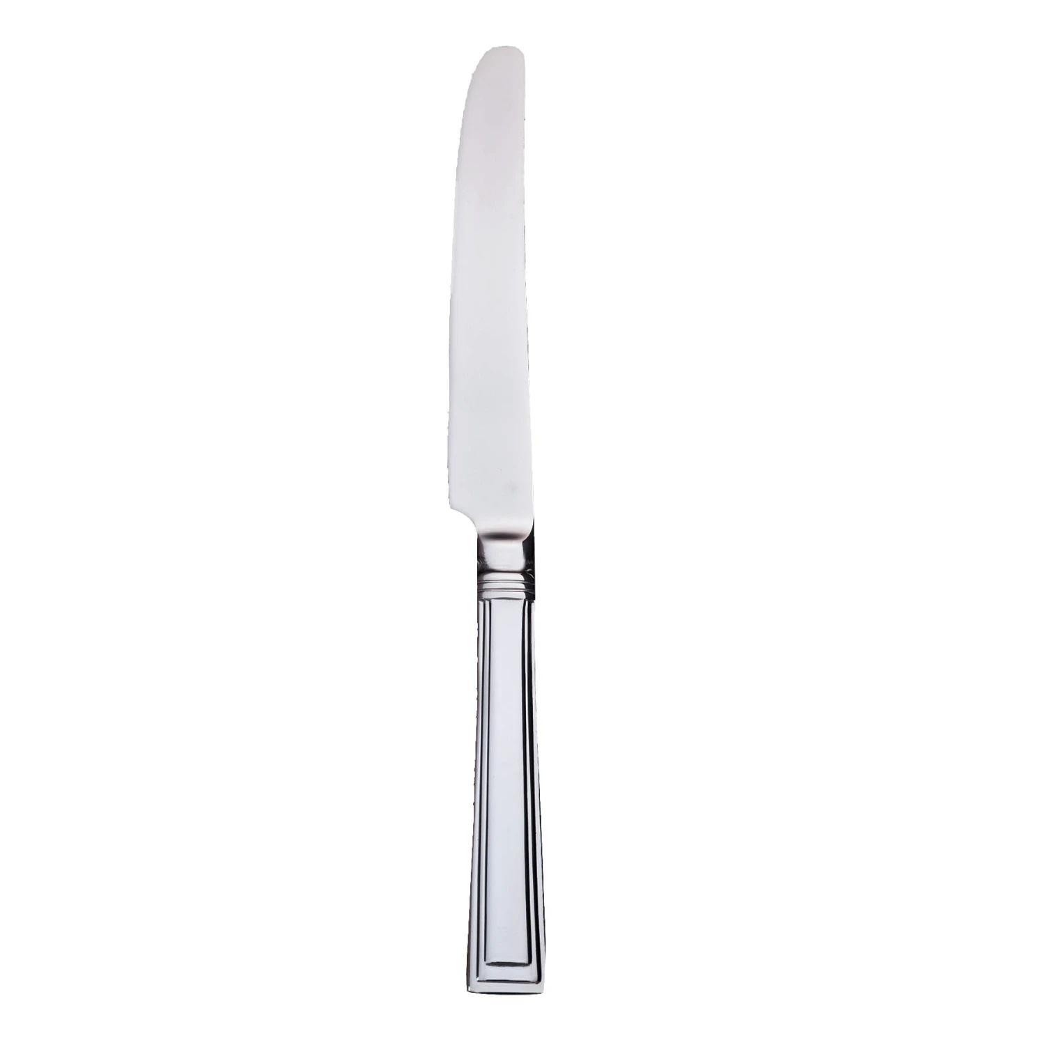 This 9‐3/4″ solid handle dinner knife features a fluted blade and the square and concentric design of the Slate pattern in high‐quality stainless steel. This versatile pattern also features a comfortable feel, a heavy weight handle, and a bright mirror finish.
