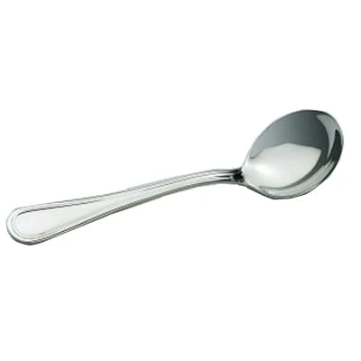 The 6‐1/2″ soup spoon features the contemporary contours of the Contour collection from Worthy, Noble & Kent.