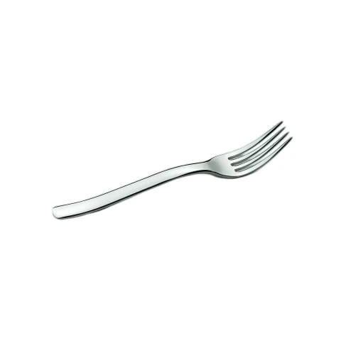Comfortable to hold, this 7‐3/4″ table fork has the sleek, curved handle of the Tura collection from Worthy, Noble & Kent.